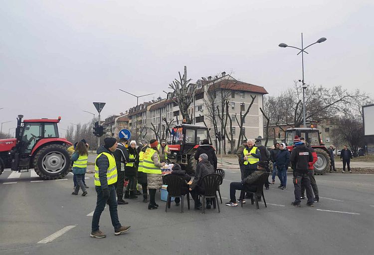 Jutros oko 7 sati, studenti potpomognuti poljoprivrednicima blokirali su kružni tok na Rumenačkom putu i raskrsnicu na Futoškom putu kod GSP-a.