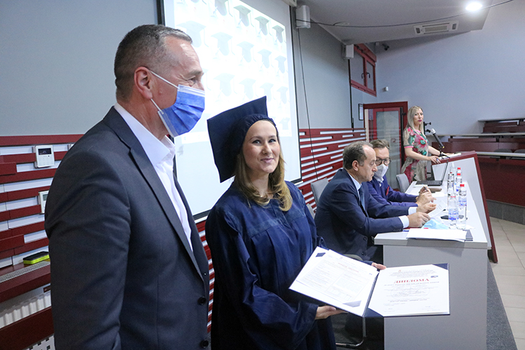 Među onima koji su danas promovisani, bila je i Jelena Milosavljević Nikov koja radi u bankarskom sistemu. Njena naučna oblast bilo je privredno pravo, a tema rada "Pravni položaj banke u pravnom sistemu republike Srbije".