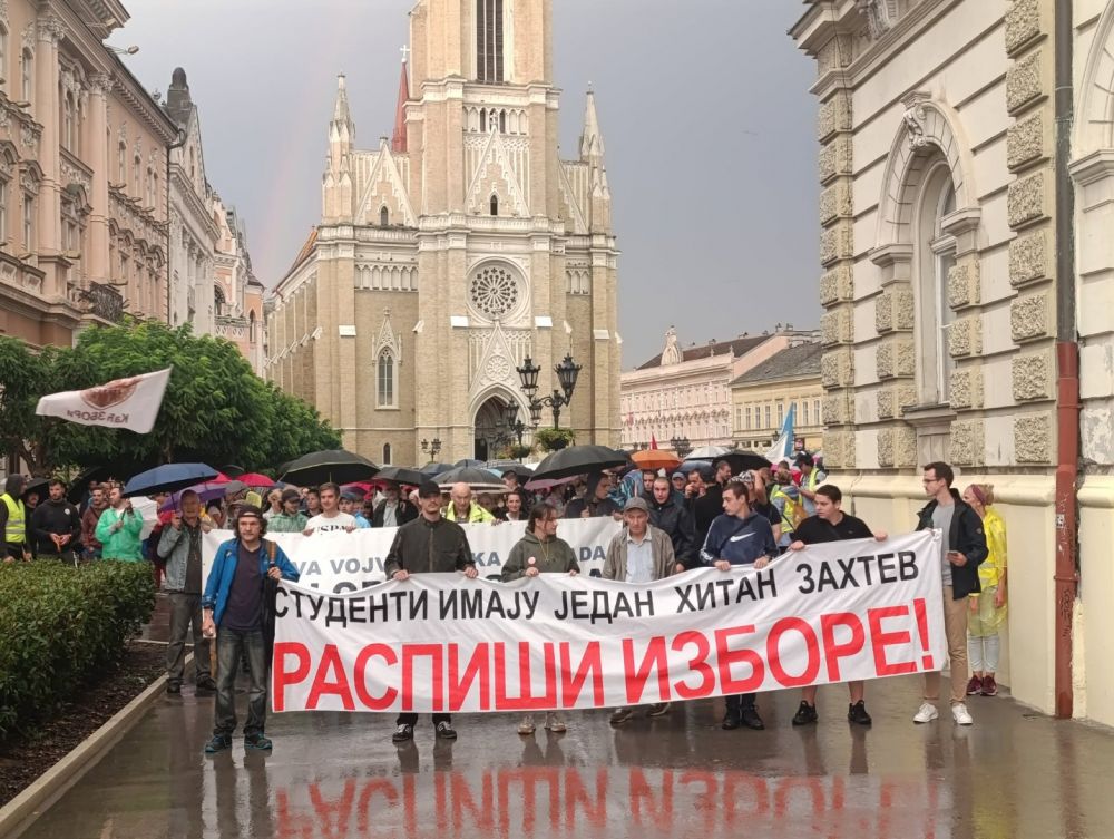 Zatim je predstavnik zborova pozvao prisutne da sutra u 7.15 sati podrže protest kod Jovine gimnazije, u 11.52 sata protest u kampusu i u 12 časova poljoiprivrednike kod Banovine.