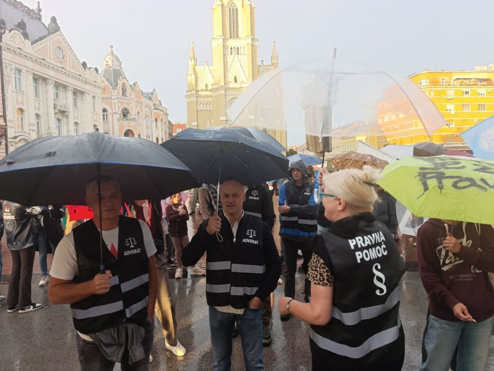 Kako je ranije najavljeno, advokati su na protest došli u vidno obeleženim prslucima, "kako bi građani mogli da ih uoče i odmah na licu mesta dobiju pravnu pomoć".