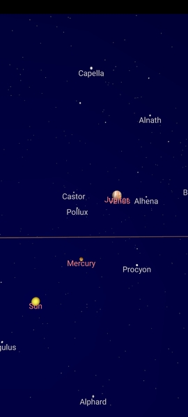 Levo, manje svetlo je Merkur, a desno svetlo su dve planete Jupiter i Venera.