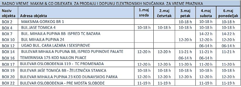 U sredu, 1. i u nedelju i ponedeljak (5. i 6. maj) prodajna mesta neće raditi