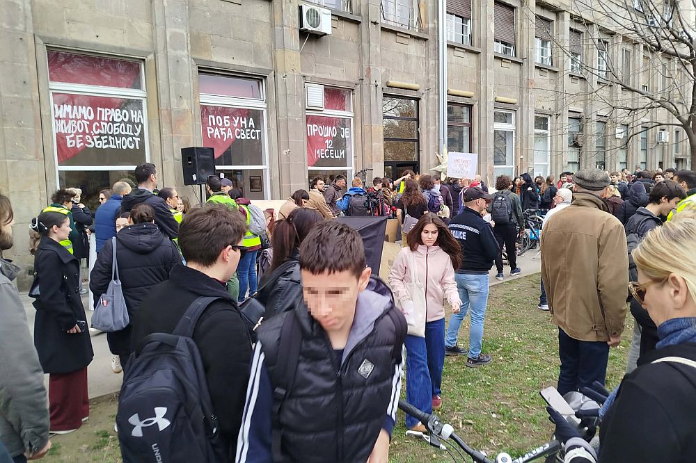 Za slobodu koju ne odredjuje drskost i izbacivacka logika coveka pod krivicnom prijavom za zloupotrebu sluzbenog polozaja. Tuzilastvo je vec poslalo zahtev, cak i urgenciju za postupanje UKP-a, ali policija "cuti" i stiti svog saradnika i jedinog dekana koji je navodio pendrek na glave i ledja studenata. Sada se, opet po zadatku, ostrvio na profesore Filozofskog fakulteta. Stop nasilnicima i policijskim saradnicima u prljavom poslu unistavanja univerziteta.
