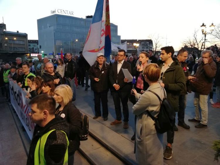 Okupljenim sugrađanima kojih je bilo oko hiljadu, ispred SNP-a su se obratili student i muzičar Nikola Sibinčić koji je danas bio i uvodni govornik, balerina Bojana Leko i prof. dr Janko Veselinović.