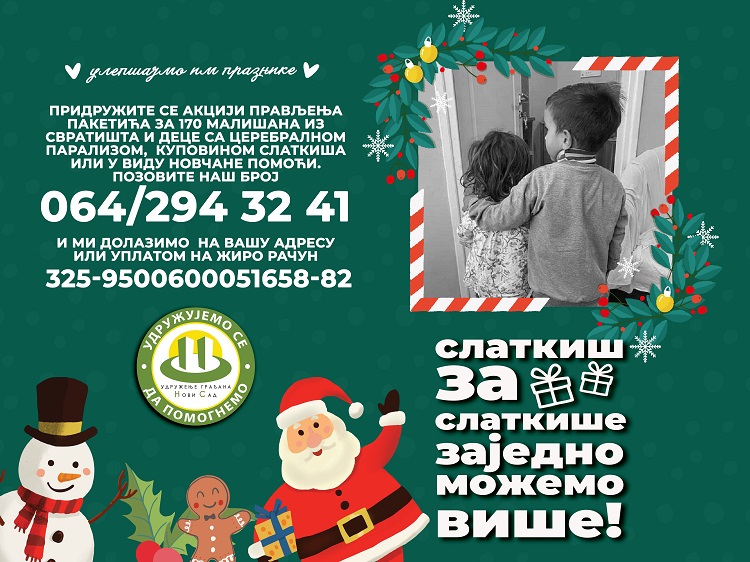 Udruženje građana “Novi Sad” pod sloganom “Slatkiš za slatkiše” počinje akciju kojom će se za 170 mališana obezbediti novogodišnji paketići.