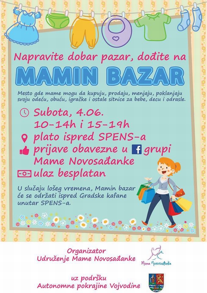 Prodavci polovnih, ali očuvanih stvari biće majke iz Facebook grupe Mame Novosađanke, koje su unapred prjavile učešće, a kao kupci su dobrodošli svi koji žele da za malo novca kompletno opreme porodicu povoljnim stvarima.