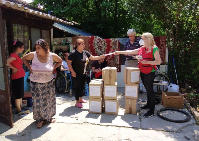 Na inicijativu Ministarstva državne uprave i lokalne samouprave Republike Srbije, Crveni krst Srbije je za 29 gradova i opština obezbedio porodične higijenske pakete pomoći romskim naselјima prilikom prijave za imunizaciju. Gradu Novom Sadu je isporučeno ukupno 700 paketa.