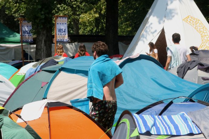 Punjenje baterija se uglavnom odigrava u hladu zbog visokih temperatura, te su se posetioci Štranda podelili na tri tabora: na one koji “otpadaju” na travi spavajući dubokim snom, na one koji se osvežavaju u hladnoj vodi Dunava i na one koji se od Sunca brane šatorskim krilima unutar kampa.