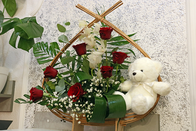 Najveća korpa, koja sadrži velikog medu i kombinaciju ruža i orhideja, košta 5.000 dinara.