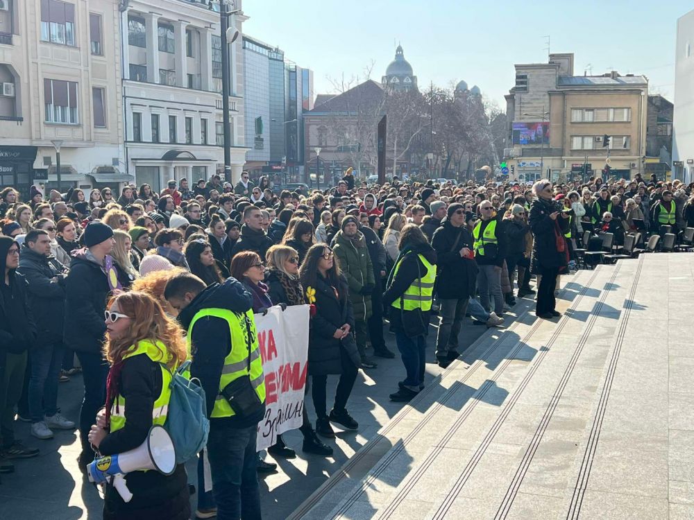 Nakon što je kod Rektorata Slobodan univerzitet danas dodelio nagrade novosadskim studentima, a u 11.52 sata zajednički održan 15-minutni pomen poginulima na Železničkoj stanici, studenti, profesori i građani prošetali su do Srpskog narodnog pozorišta gde su ih dočekali zaposleni u ovoj ustanovi.