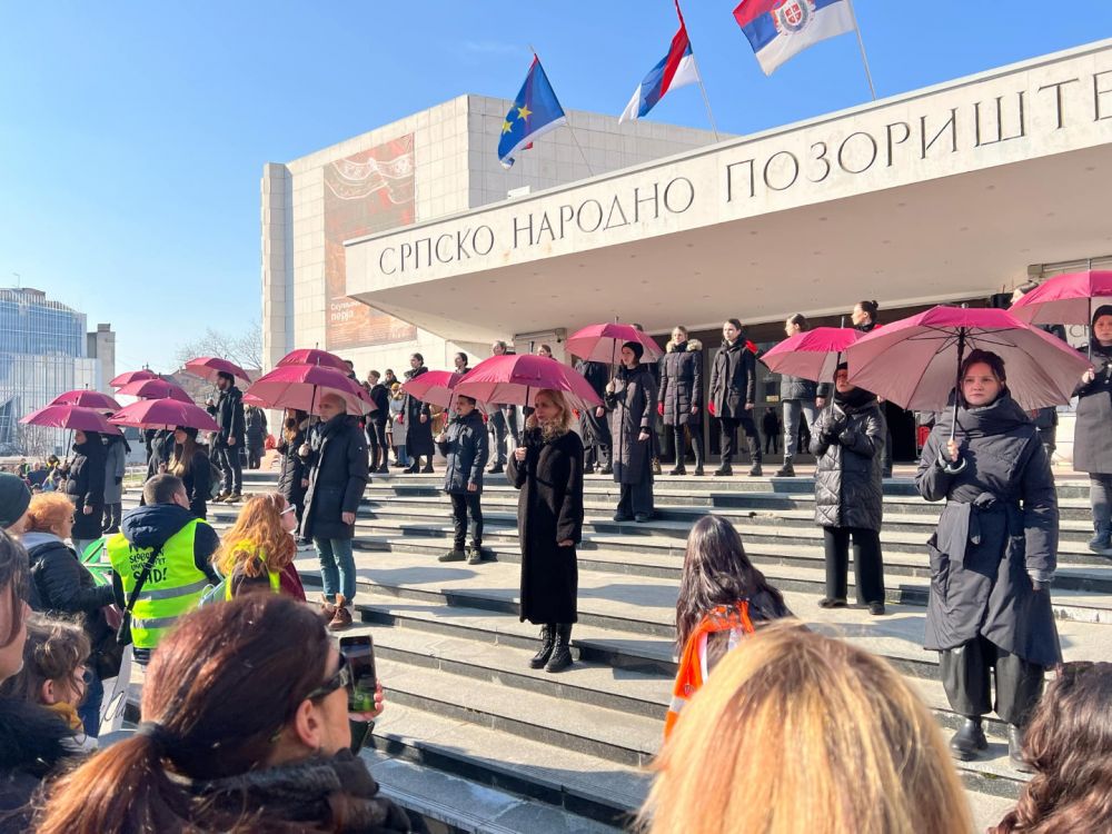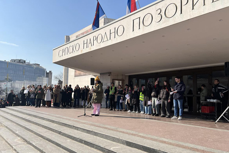 Na platou ispred pozorišta okupio se veliki broj građana, a čuli su se povici: “Generalni štrajk!”.