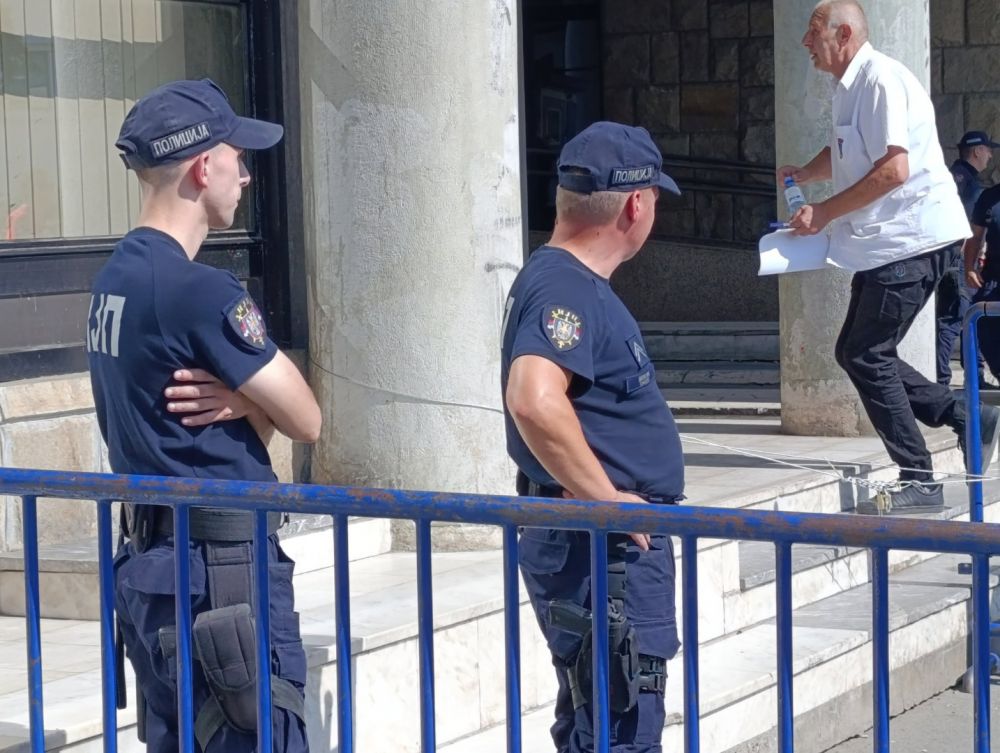 Oko zgrade Skupštine grada postavljena je metalna ograda, a prisutni su i pripadnici interventne jedinice policije bez opreme za razbijanje nereda, kao i policajci u civilu. Građani su ih pohvalili jer im se na uniformi vidi prezime.