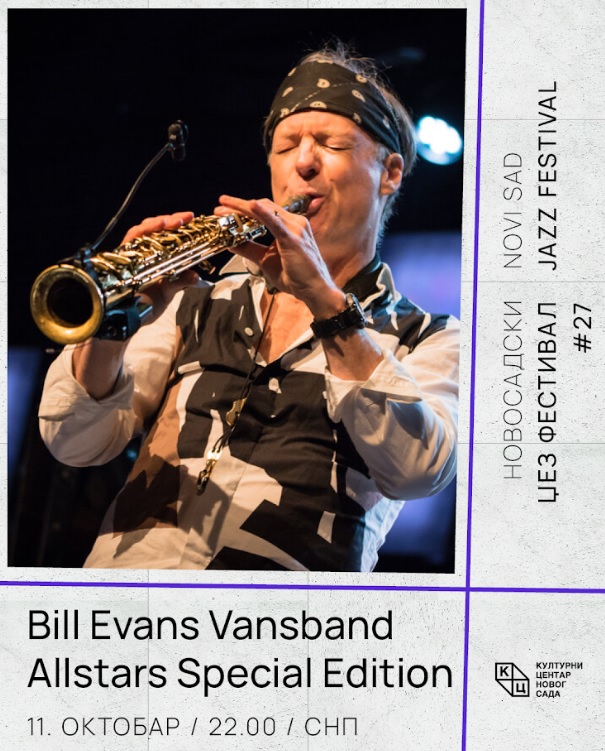Muzičar koji je decenijama bio glavna zvezda džez festivala širom sveta, Bill Evans okupio je jedinstven sastav Vansband Allstars Special Edition sa kojim će premijerno nastupiti u Srbiji, na Novosadskom džez festivalu u subotu, 11. oktobra u 22 časa. Bill ima i uspešnu solo karijeru koja traje i razvija se već više od 35 godina, uz 27 solo albuma do danas i dve nominacije za nagradu Grammy. Vansband Allstars Special Edition čine legendarani džez muzičari! Specijalni gost, biće Dave Weckl, jedan od najuticajnijih bubnjara poslednjih decenija, koji je uvršten u dvoranu slavnih časopisa Modern Drummer i proglašen jednim od 25 najboljih bubnjara svih vremena. Ovom zvezdanom sastavu priključio se Steve Weingart, klavijaturista sa muzičke scene Los Anđelesa koji je sarađivao sa imenima kao što su Chaka Kahn, Stanley Clarke, Victor Wooten, David Sanborn i Steve Lukather (Toto), kao i Dave Weckl i Simon Phillips. Na sceni će biti i legendarni basista, Jimmy Earl, koji će biti prava poslastica za evropsku publiku. Ovo mu je prva turneja po Evropi nakon više od 20 godina, te je prava retkost za džez publiku širom sveta da ga vidi uživo!