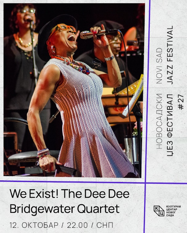 Džez diva, Dee Dee Bridgewater sa svojim “We Exist!” kvartetom obasjaće scenu Novosadskog džez festivala u nedelju, 12. oktobra u 22 časa. Tokom više od četiri decenije karijere, dobitnica nagrada Grammy i Tony i jedna od najvećih džez vokalistkinja, Dee Dee Bridgewater izgradila je mesto u vrhu svetske muzike. Njen snažan i nepogrešivi vokal obeležio je brojne albume i koncerte, a svojom hrabrošću u interpretaciji klasika donela je osvežavajuću energiju i novi senzibilitet u džez. Sa tri Grammy nagrade iza sebe, među kojima je i nagrada za najbolji vokalni džez album To Billie With Love From Dee Dee, Bridgewater je ostavila dubok trag i kao članica legendarnog Thad Jones/Mel Lewis Big Band-a, ali i u saradnjama sa velikanima kao što su Sonny Rollins, Dexter Gordon i Dizzy Gillespie. Njena karijera obuhvata i blistave uloge u pozorištu – Tony nagrada za mjuzikl The Wiz i brojne zapažene produkcije na Brodveju i Vest Endu svedoče o njenoj raznovrsnosti.