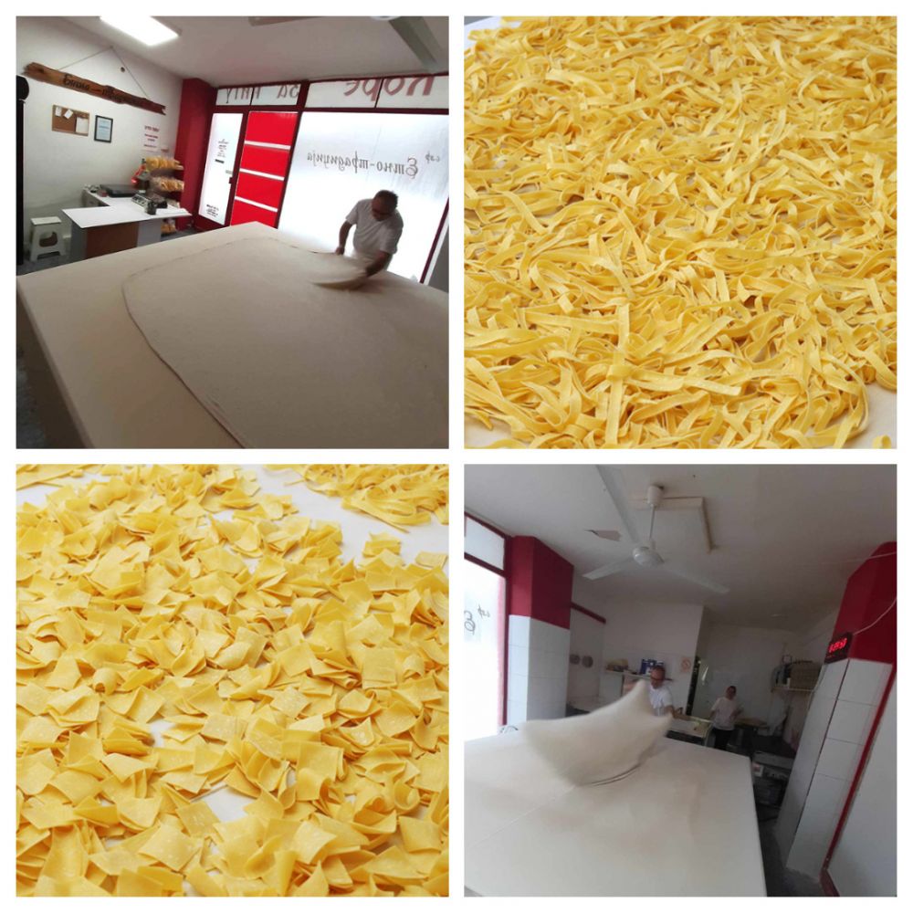 U tih 30 kvadrata, svakog dana se s ljubavlju prave kore za pitu u tri debljine, testo za lazanje, rezanci za supu u tri debljine, tarana, flekice za supu u dve veličine, testo za gulaš u tri debljine, krupnije flekice za nasuvo sa krompirom, mlinci sa jajima i bez jaja, heljdine kore za pitu i taljatele od heljde. Sve je bez aditiva.