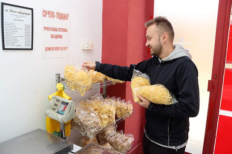 – U proizvodnji radimo svo troje, ali je tata Ljupčo glavni majstor. On je 1987. godine došao iz Makedonije, sa diplomom Radničkog univerziteta, gde se specijalizovao za kore za pitu i pecivo, a ovde je kalio zanat. Mamina specijalnost su rezanci za supu, dok sam ja zadužen za pečenje mlinaca, pakovanje i distribuciju – navodi najmlađi član.