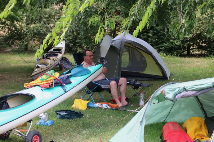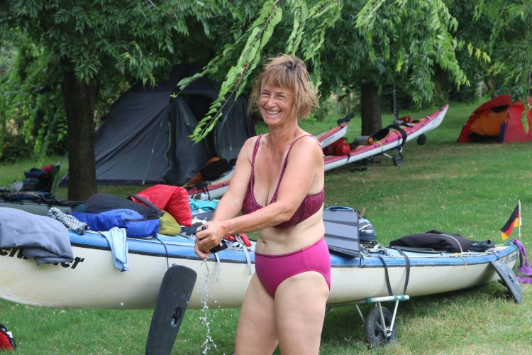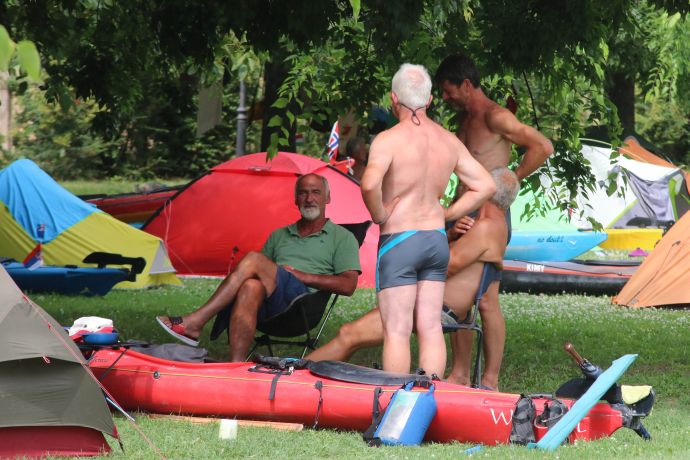 Štrandaroši koji su se tokom vikenda zatekli kod odbojkaških terena mogli su da vide podignute šatore i kajake sa zastavama mnogih država Starog kontinenta. Avanturisti su iskoristili pauzu od veslanja za pranje odeće, odmor i kupovinu neophodnih potrepština.