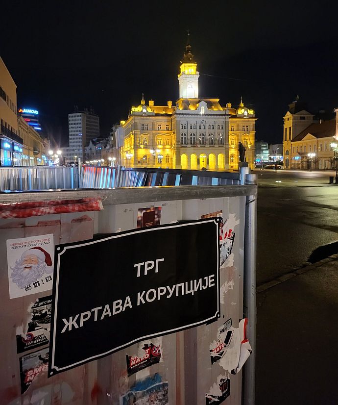 Novi Sad je noćas išaran crvenim šakama, kao i nalepnicama sa različitim antirežimskim porukama.