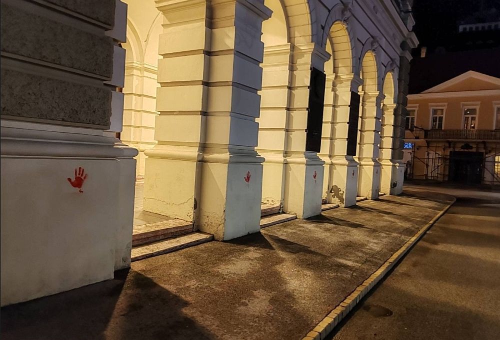 FOTO: Centar Novog Sada iscrtan krvavim šakama, član grupe Zborovi NS priveden pa pušten