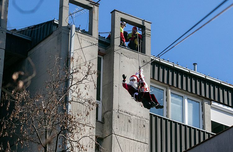 Koristeći svoje veštine i znanje u vertikalnim uslovima, jedan Deda Mraz se, noseći poklone, spustio sa krova bolnice do dece. U humanitarnoj akciji učestvovalo je 15 gorskih spasioca stanice “Novi Sad”.