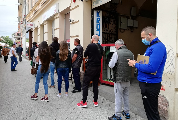 Prošetali smo gradom i uverili se da su i dalje najveće gužve ispred banaka. Osim toga redove smo zatekli ispred provajdera mobilne telefonije, predstavnštva SBB-a, Telenora…