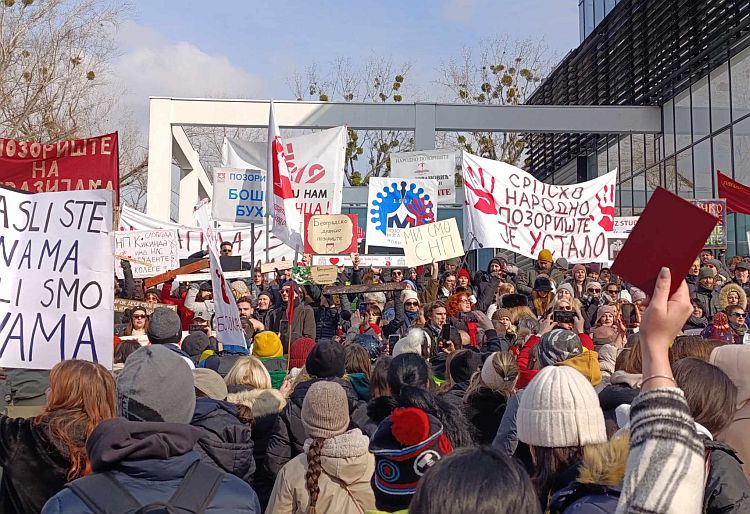Podsećamo, organizatori su pozvali radnike iz kulture, studente i građane da im se priljuče, a ideja je da se javno pruži podrška studentskim blokadama i skrene pažnja javnosti na sedmodnevni štrajk pozorišnih institucija.