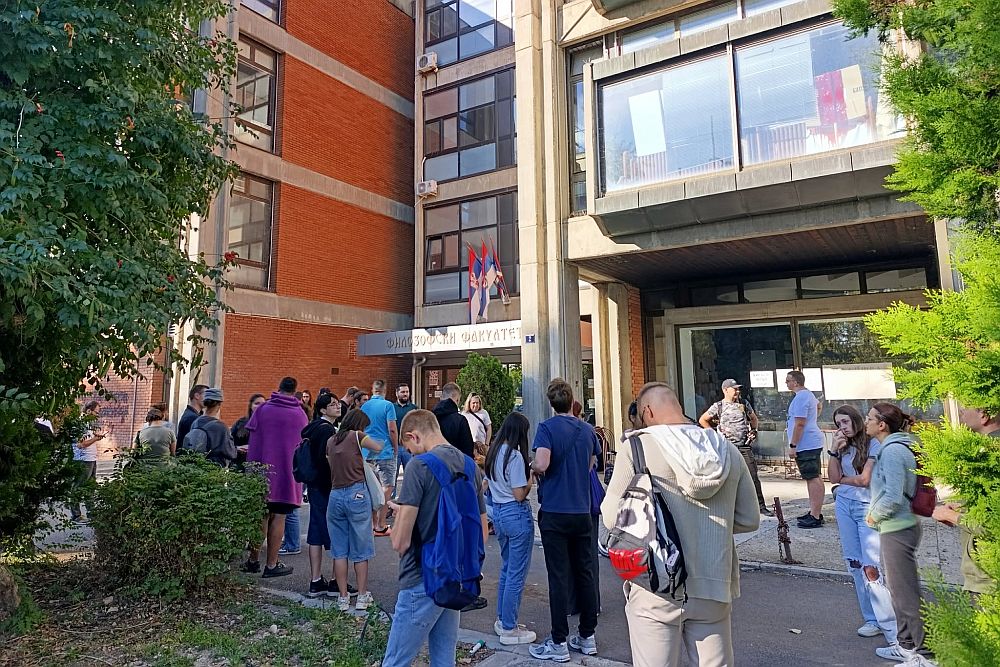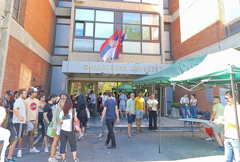 Na poziv studenata, ispred Filozofskog fakutleta se okupljaju kolege sa drugih fakulteta, profesori i građani.