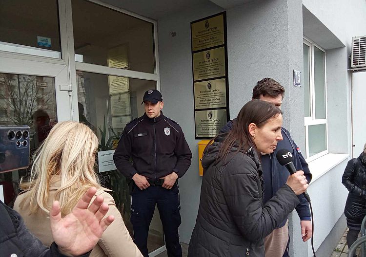 Predstavnici demonstranata, koji su ušli u dvorište Centra, obratili su se javnosti, a policajci obezbeđuju vrata objekta.