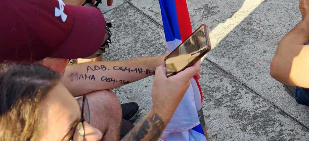 Redari su, kao što je bio slučaj i na protestu održanom 15. marta u Beogradu, na rukama ispisali svoje krvne grupe i brojeve telefona članova porodice.
