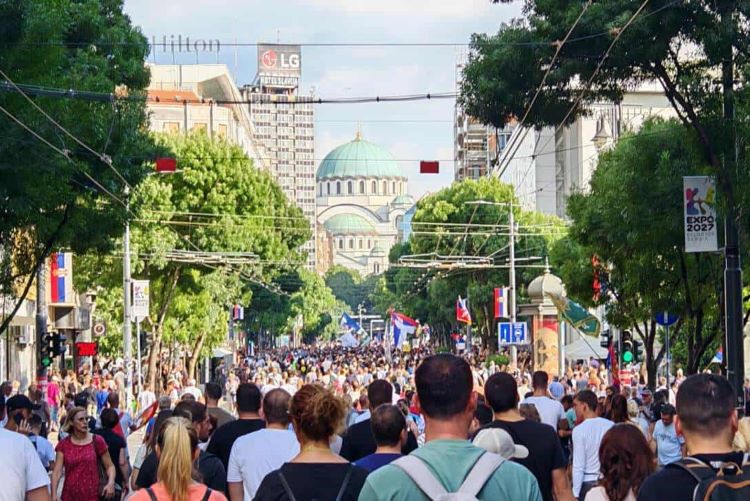 Iako je studentski protest “Vidimo se na Vidovdan” trebalo da počne u 18 časova na Trgu Slavija u Beogradu, program je odložen zbog ogromnog broj ljudi koji su pristizali.