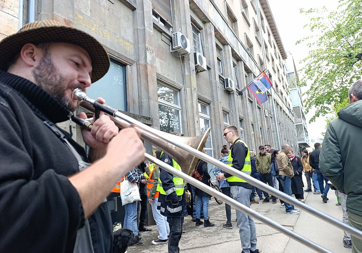 – Nakon kontinuiranog nepoštovanja odluke plenuma tokom blokade, individualnih poziva na telefon, pritisaka i zastrašivanja, kako pojedinaca tako i kolektiva, laganja oko postojećih finansija Akademije i uskraćivanja profesorskih plata, naš dekan se pokazao kao nekompetentno lice da zaštiti i očuva ovu instituciju – ocenio je student koji se obratio prisutnima ispred zgrade Akademije.