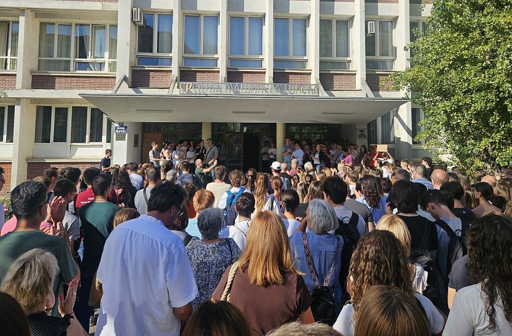 Uz poruku da će biti uz svoje profesore do kraja, veći broj sadašnjih i bivših đaka, roditelja i Novosađana okupio se ispred Saobraćajne, Mašinske i Hemijske škole.