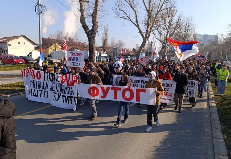 Novosadski srednjoškolci, potpomognuti studentima, poljoprivrednicima i građanima krenuli su danas nešto pre 9 sati od Hotela Šeraton gde su se okupili, ka Poljoprivednoj školi u Futogu.