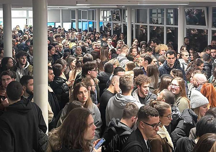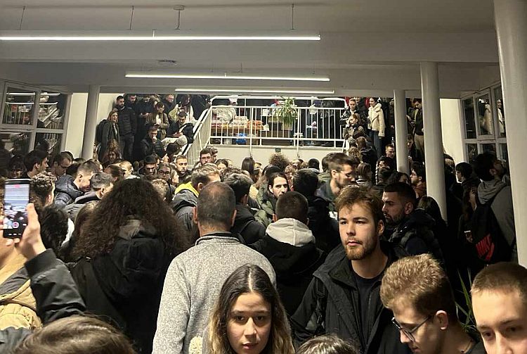 Međutim, s obzirom da je došlo nekoliko hiljada studenata (pretpostavka je da ih ima više od 3.000) koji su zauzeli oba amfiteara i sve hodnike i stepenice, a ispred fakulteta se čeka red, plenum je održan na hodniku.