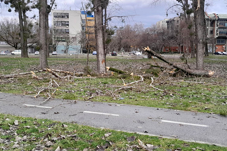 Čitaoci javljaju da su na nekoliko lokacija oštećeni parkirani automobili na koje su pale grane i delovi drveća.