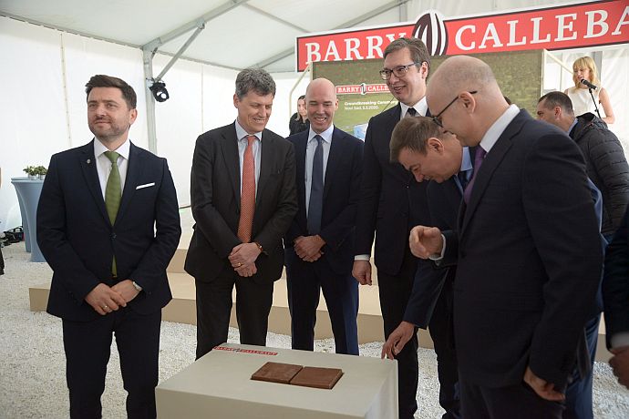 Predsednik Republike Srbije Aleksandar Vučić i gradonačelnik Novog Sada Miloš Vučević prisustvovali su postavljanju kamena temeljca povodom izgradnje fabrike “Barry Callebaut”, vodećeg svetskog proizvođača visokokvalitetnih čokolada i kakao proizvoda, u Novom Sadu.