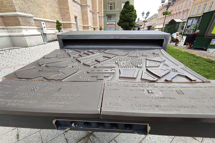 Neki od njih su, delimično ili potpuno izgubili svoju funkciju, kao što je taktilna mapa Novog Sada, koja se nalazi pored Katedrale (Crkve Imena Marijinog), a namenjena je slepim i slabovidim osobama. Na njoj je predstavljeno uže gradsko jezgro s naglašenim ključnim komunikacionim tačkama i sa ustanovama od javnog značaja, pešačkim zonama i saobraćajnicama.