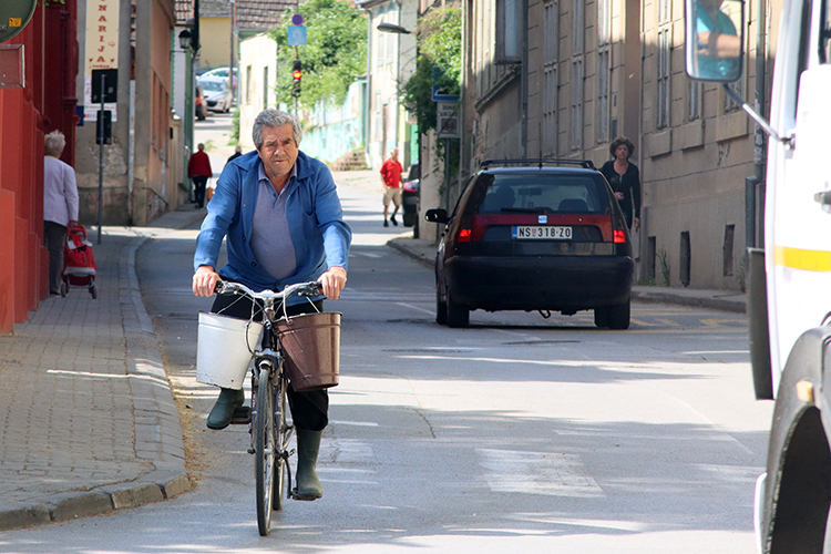 Niz uske karlovačke uličice radnim danima saobraćaj nije gust, dosta meštana koristi bicikl i sve deluje dosta mirno i lagano. Čak ni poštar ne deluje nervozno dok vozi svoj motor.