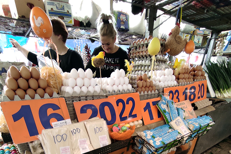 Ubedljivo najposećenije su tezge sa jajima, kao i svom uskršnom dekoracijom, pa odasvud poglede privlače čokoladne zeke, farbe i nalepnice za jaja, slatkiši i ostale zanimacije.