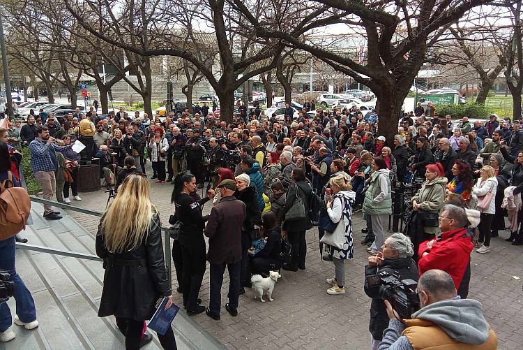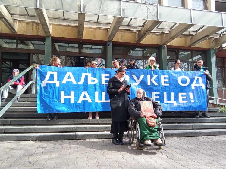 Protest građana koji zahtevaju da se troje dece vrate njihovoj majci, Ani Mihaljici, održava se ispred suda u Sutjeskoj ulici u Novom Sadu.
