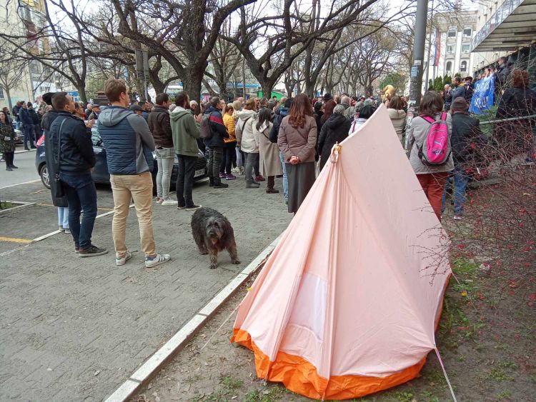 Na zelenoj površini ispred Suda postavljen je šator.