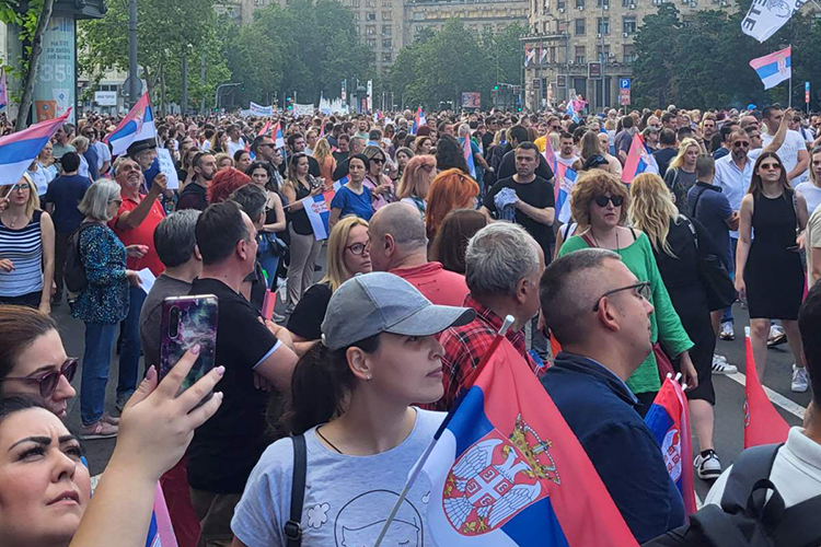 Podsetimo, prvi protest “Srbija protiv nasilja” održan je 8. maja, a 12. maja građani su na drugom protestu blokirali most Gazela na dva sata. Treći protest održan je 19. maja, a tada su bili blokirani Gazela i Brankov most. Četvrti protest održan je 27. maja, a učesnici su nakon šetnje formirali prsten oko zgrade RTS-a. Tokom petog protesta, prošle subote, učesnici su posle šetnje formirali prsten oko zgrade Predsedništva.