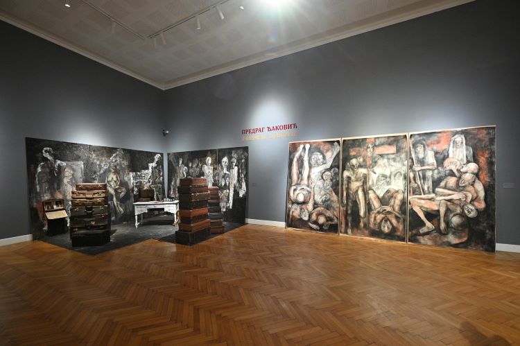 Dr Danilo Vuksanović istakao je da slika “Milosrđe” ima zanimljivu istoriju, kao i simboliku i da je “ono što se nalazi u njenom centralnom delu – taj crveni krst iza devojke u belom, poslužio Peđi Đakoviću da ostvari čitav ovaj ciklus koji se nalazi na ovoj izložbi”