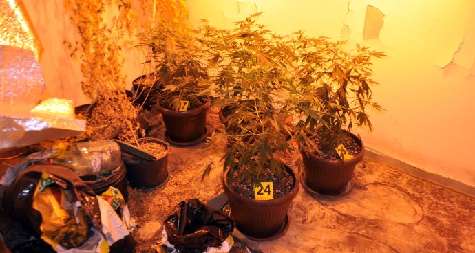 Policija je u stanu koji oni koriste pronašla laboratoriju za proizvodnju marihuane sa pratećom opremom, stabljike indijske konoplje u saksijama, više od pet kilograma suve biljke, seme kanabisa, amfetamin i tablete ekstazija.