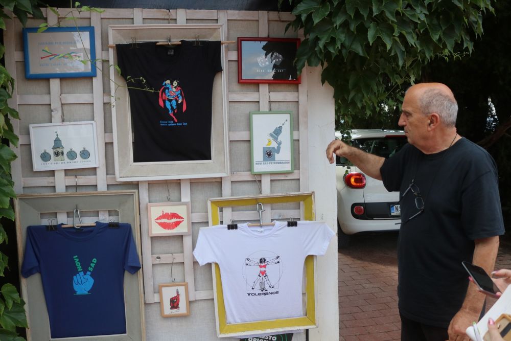 – Kao mali, lokalni umetnik, mogao sam da stanem u zaštitu svog grada tako što sam napravio tu kolekciju, koja je otišla u ceo svet. Majica je upakovana u grafiku, tako da za 1.800 dinara dobijate grafiku za obući i za kuću. Kako kod nas dolaze turisti iz različitih država, majice su zapravo pokretni štafelaji koji su obišli čitav svet i to nekoliko puta – kaže Radošević.