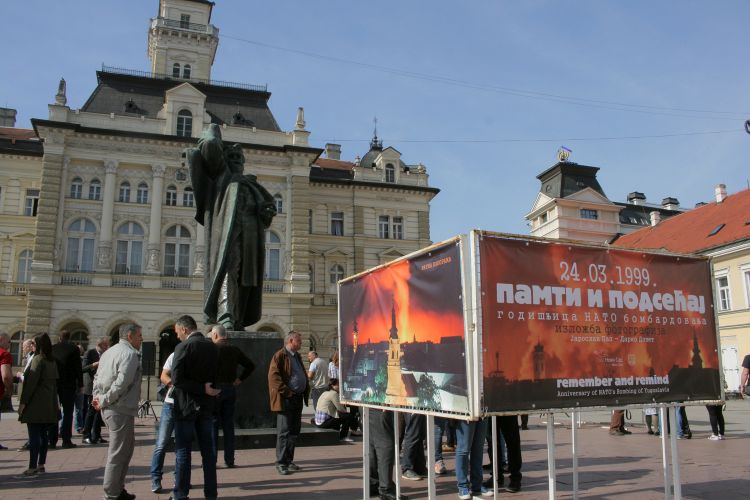 Izložba fotografija pod nazivom “Pamti i podsećaj”, povodom godišnjice NATO bombardovanja, fotoreportera Jaroslava Papa i Darka Dozeta, otvorena je danas na Trgu slobode. Na dvadeset i jednom panou ispred Gradske kuće, izložene su fotografije stradanja Novog Sada tokom 78 dana agresije.