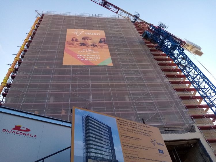 Radovi su konačno počeli krajem oktobra prošle godine, na osnovu projekta koji je izradio novosadski TIM Inženjering Sistem. Idejno rešenje fasade potpisao je arhitekta Lazar Kuzmanov nakon osvojenog pozivnog konkursa u organizaciji novosadske kompanije Vega IT koja će se useliti u ovaj objekat površine 6.500 kvadratnih metara raspoređenih na 13 spratova.