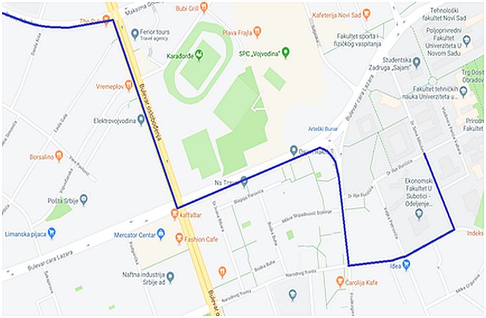 Kada je u pitanju Smer B (Univerzitet – Detelinara), autobusi će saobraćati redovnom trasom.