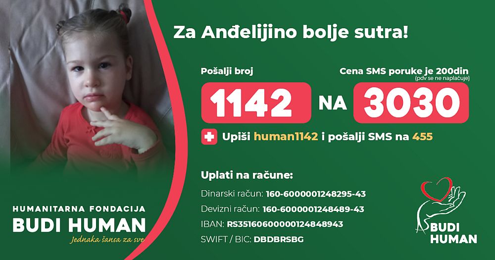 Novac je namenjen Anđeliji Jaranović koja boluje od cerebralne paralize. Detaljnije o njenoj bolesti pročitajte OVDE.