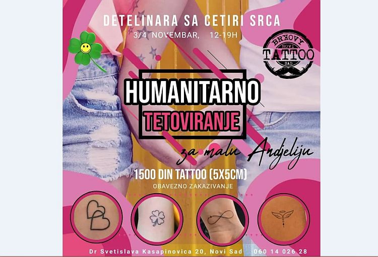 Humanitarno tetoviranje za Anđeliju 3. i 4. novembra na Detelinari